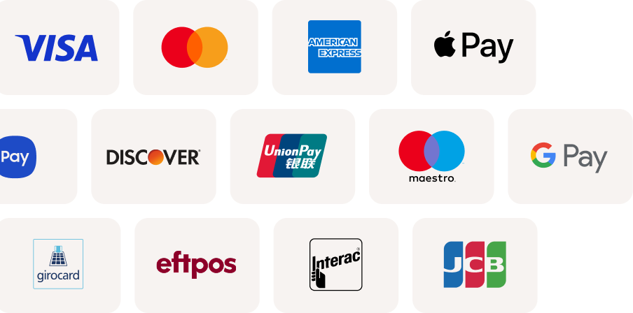 Klanten kunnen ook contactloze kaarten gebruiken zoals Maestro, Girocard, Eftpos, Interac, China Union Pay en JCB.